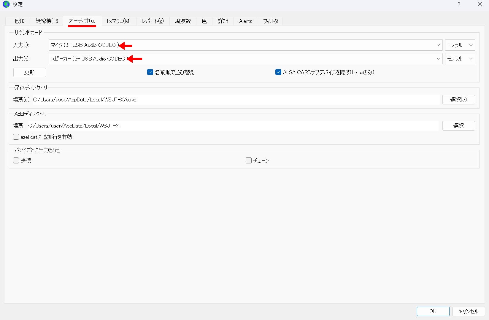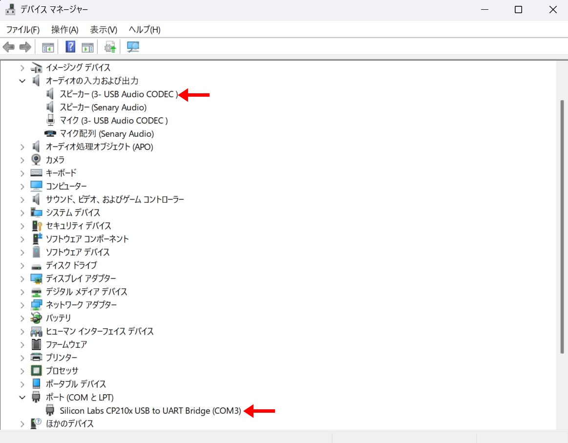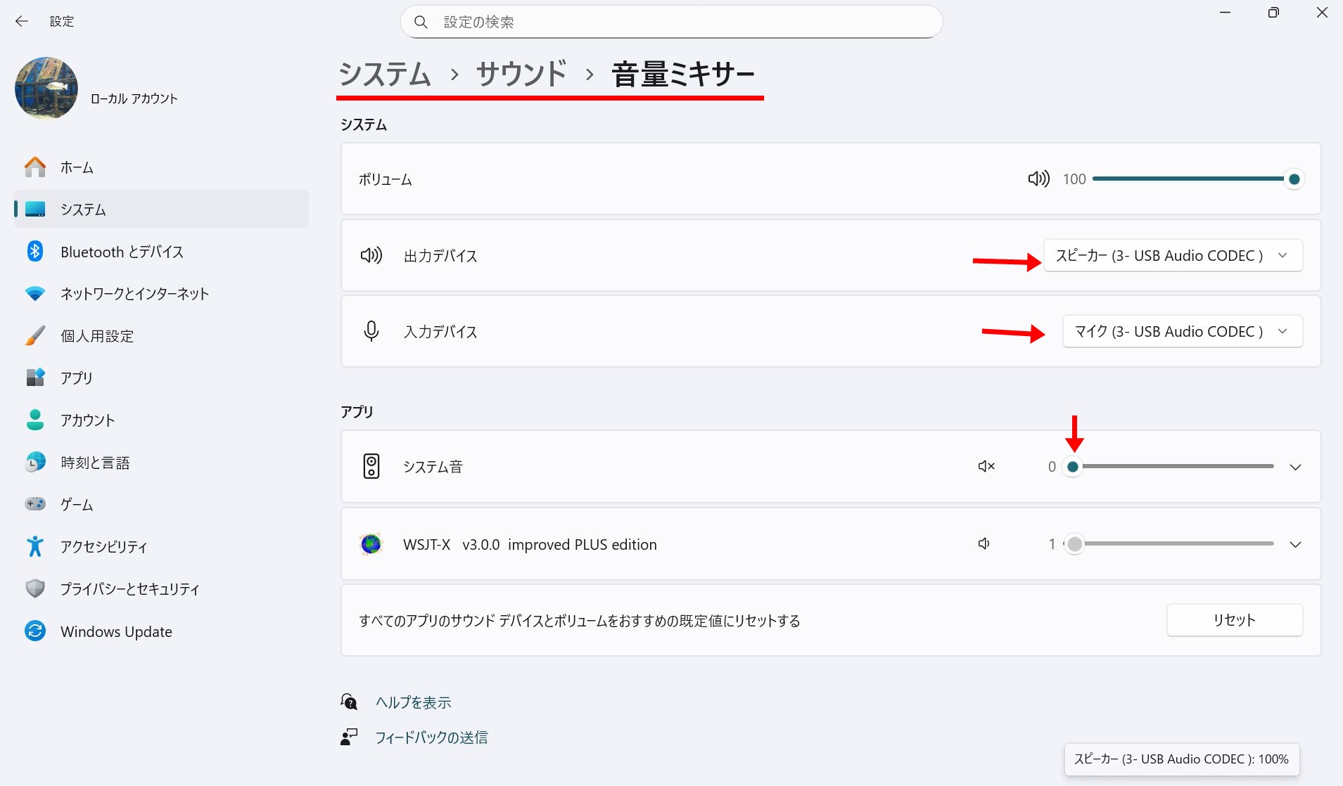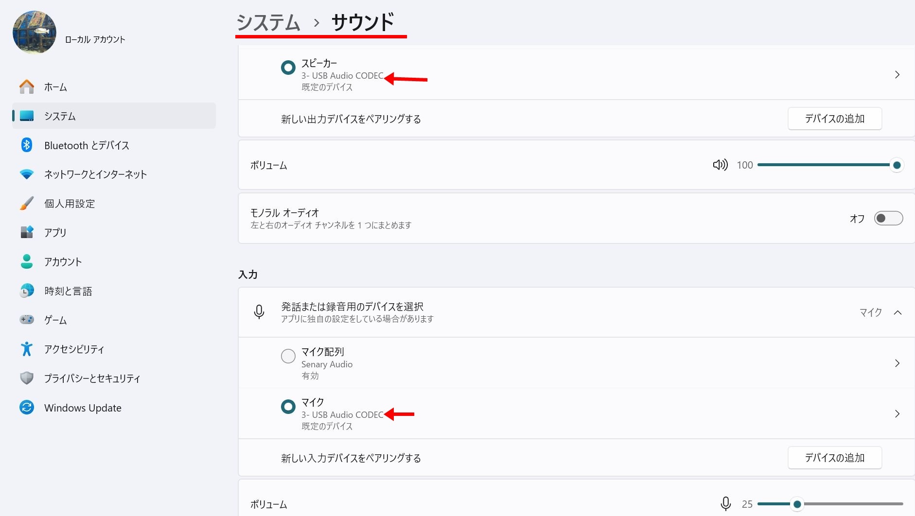 スピーカーとマイクをUSB AudioCODECに設定してあります。